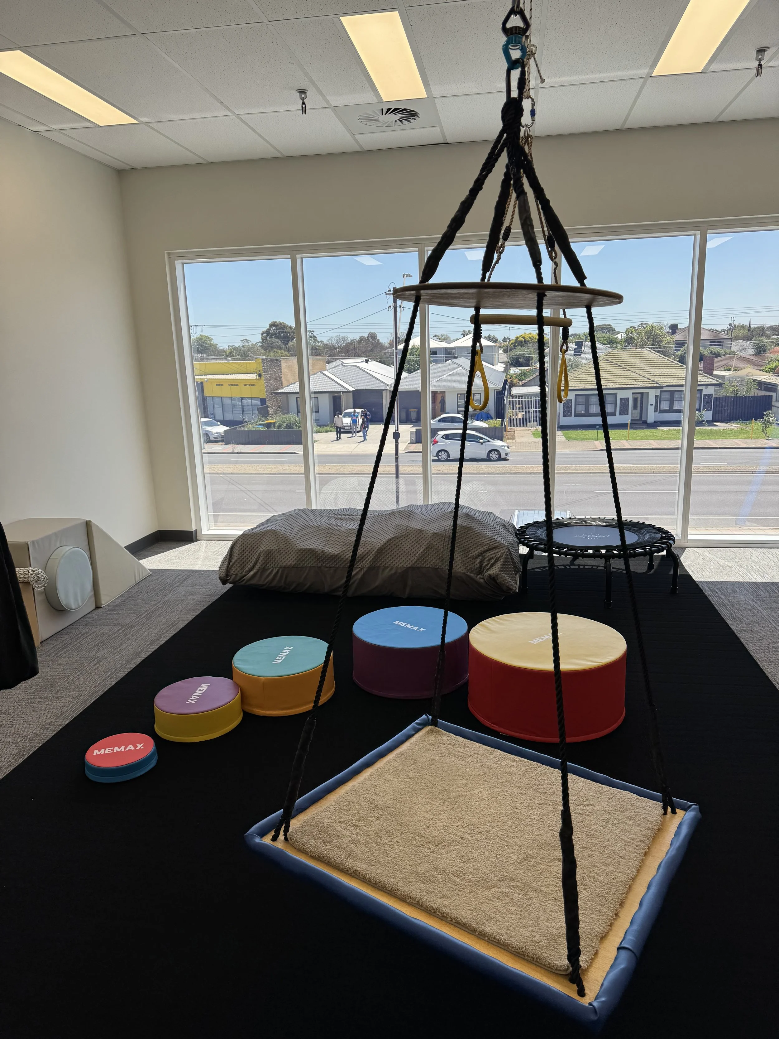 Our therapy is child-led, strengths-based and tailored to each individual. We’re building a space designed just for this kind of work with swings, trampolines and equipment that invites kids to move, explore and feel safe in their own bodies.